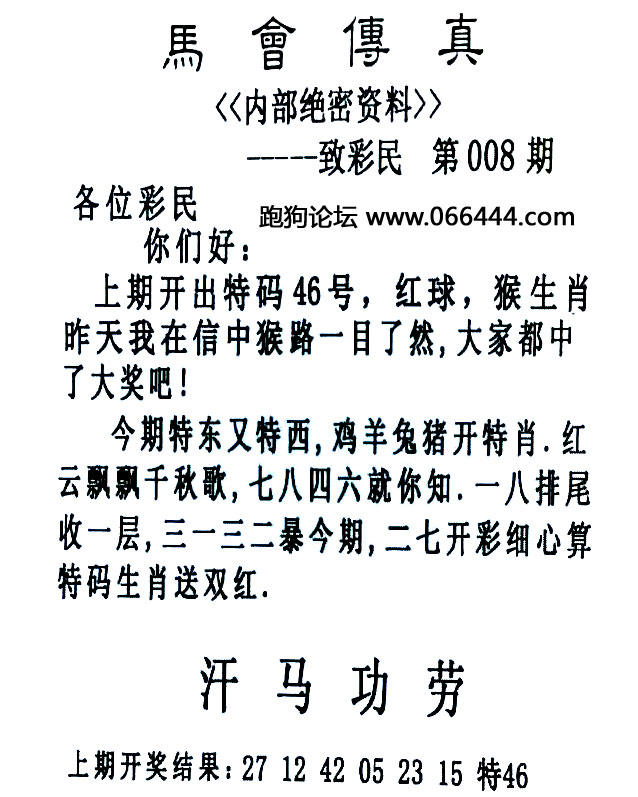 008期:跑狗论坛(成语平特解一肖)【龙马精神】 |