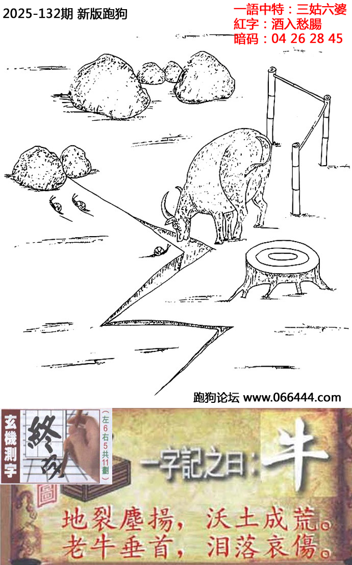 132期六合皇信箱红字【酒入愁腸】《暗码:04 26 28 45》开