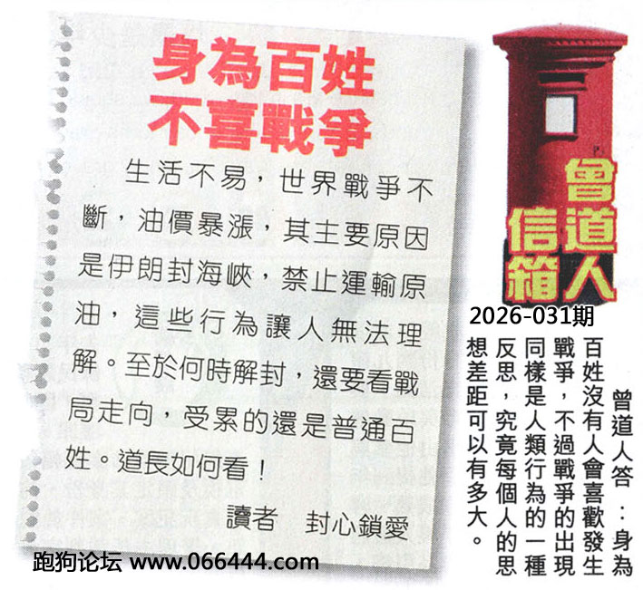 031期老版跑狗一字記之曰:【守】
