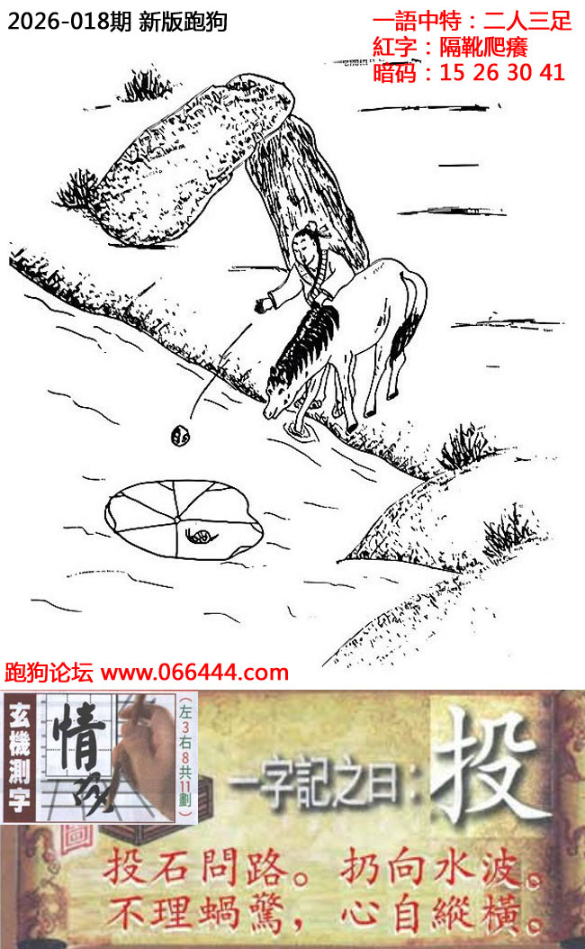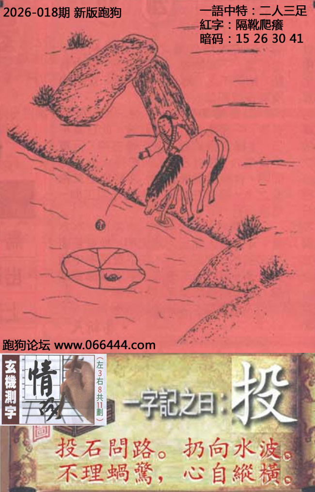 018期六合皇信箱红字【隔靴爬癢】《暗码:15 26 30 41》开